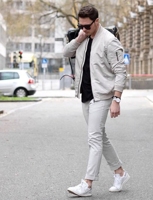 白パンツコーデは、清潔感を強調したい場面で効果的です。黒やカーキのボンバージャケットと合わせることで洗練された印象になります。白パンツを取り入れることで清潔感が際立ち、黒やカーキのボンバージャケットと合わせればコントラストの効いた大人のきれいめコーデが完成します。