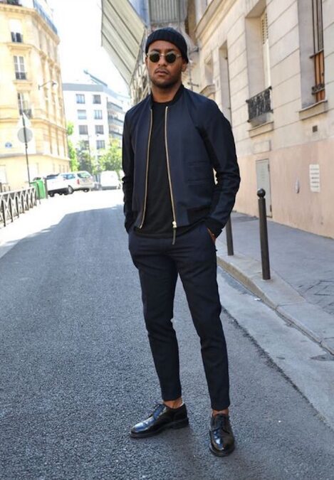 ボンバージャケット 黒 コーデ メンズの王道スタイル