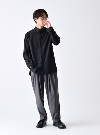 黒シャツ × グレースラックスで清潔感あるモノトーン