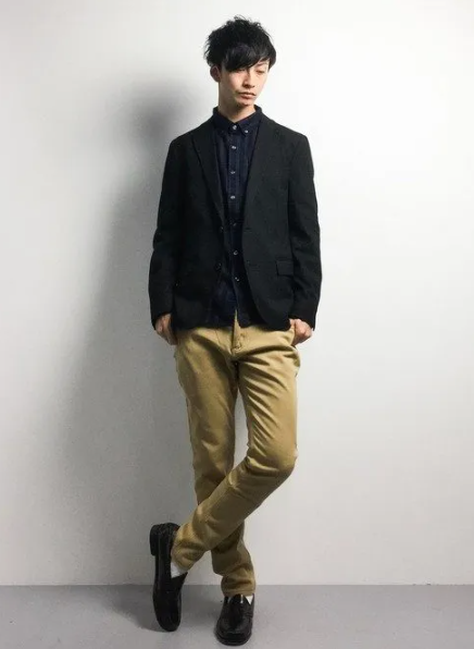 黒シャツ × チノパンの冬デート向けコーデ