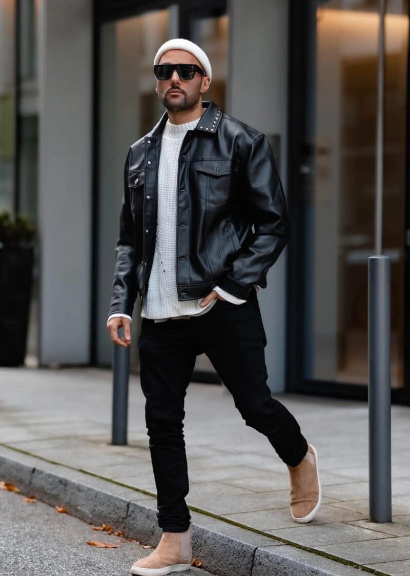 革ジャンが難しく感じられる最大の理由は、サイズ感と配色の失敗です。タイトすぎると古臭く見え、逆に大きすぎるとだらしなく見えます。また、全身を黒でまとめると重くなり、清潔感が損なわれやすい点も注意が必要です。