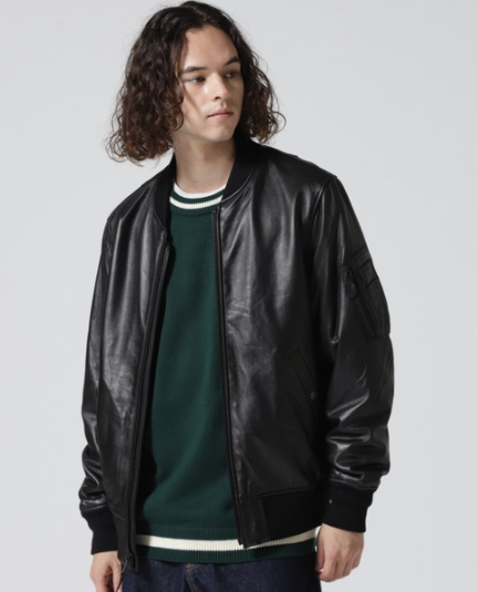 MA-1型レザーブルゾンで大人カジュアルに