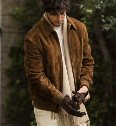 スエードレザーブルゾンで柔らかい印象に