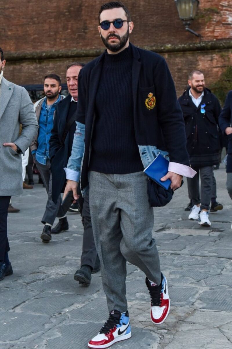 ジャケットとAir Jordanの組み合わせは、2025年 トレンド Air Jordan コーデの代表例です。カジュアルなスニーカーを、きれいめアイテムで中和することで洗練された印象になります。