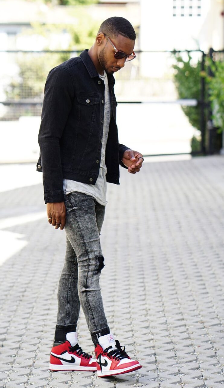 エアジョーダン × デニム コーデは、Jordan shoes outfits with jeansの王道パターンです。濃色デニムを選ぶと、カジュアルながらも落ち着いた印象になり、デートコーデにも使いやすくなります。