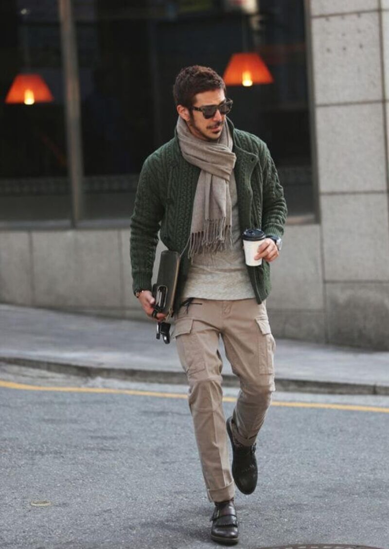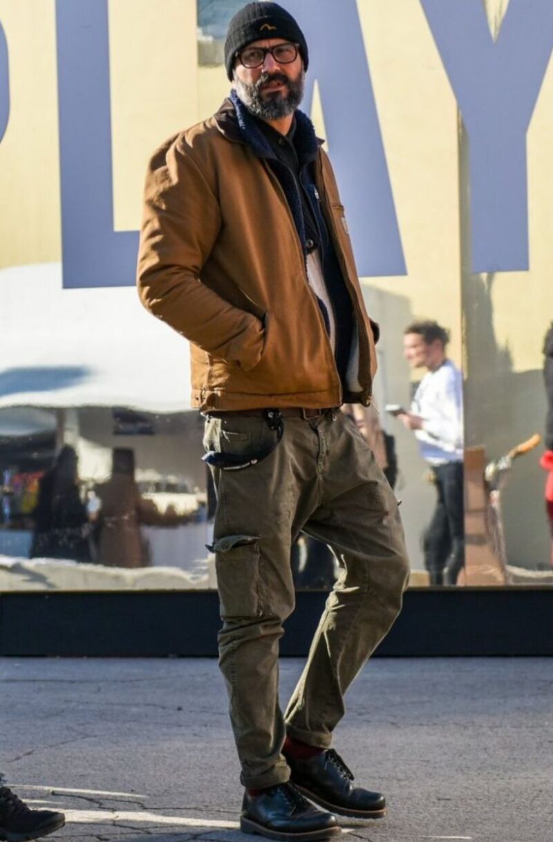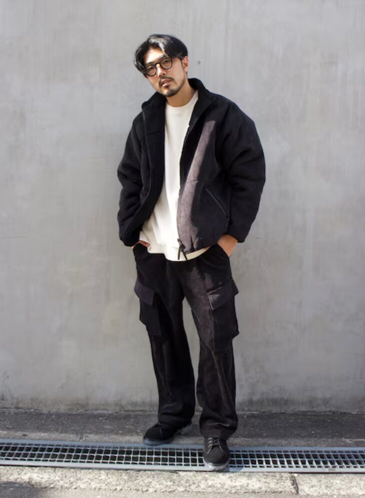特にオリーブや黒のカーゴパンツとブーツの組み合わせは、季節感を感じさせつつ大人の渋さを引き立てます。