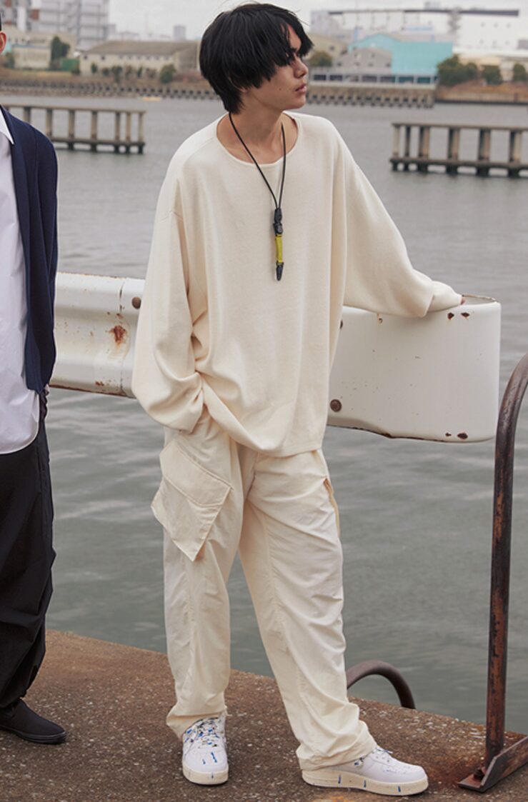 無地でシンプルなアイテムを中心に、ラフなシルエットを活かしつつ洗練されたバランスが取れるのが特徴です。