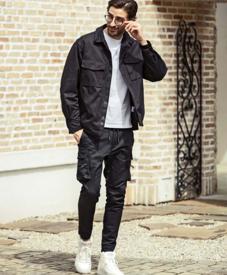 黒いカーゴパンツに白T、黒スニーカーを合わせるだけで、清潔感のあるモノトーンスタイルが完成します。女性ウケを狙うなら、サイジングを整えることが最重要です。