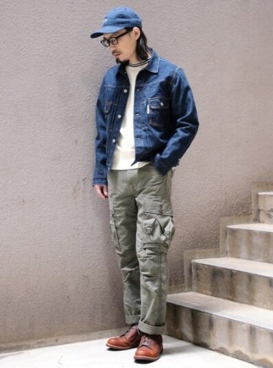 カーゴパンツ × デニムジャケット メンズ