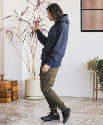 カーゴパンツ × パーカー メンズ コーデ