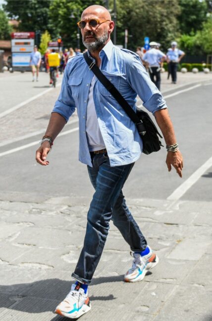 タウンユースに取り入れやすいミニショルダーバッグは、軽量で動きやすく、コーデのアクセントにもなります。おじさんでも可愛らしく、女性ウケを意識したカジュアルスタイルにおすすめのアイテムです。