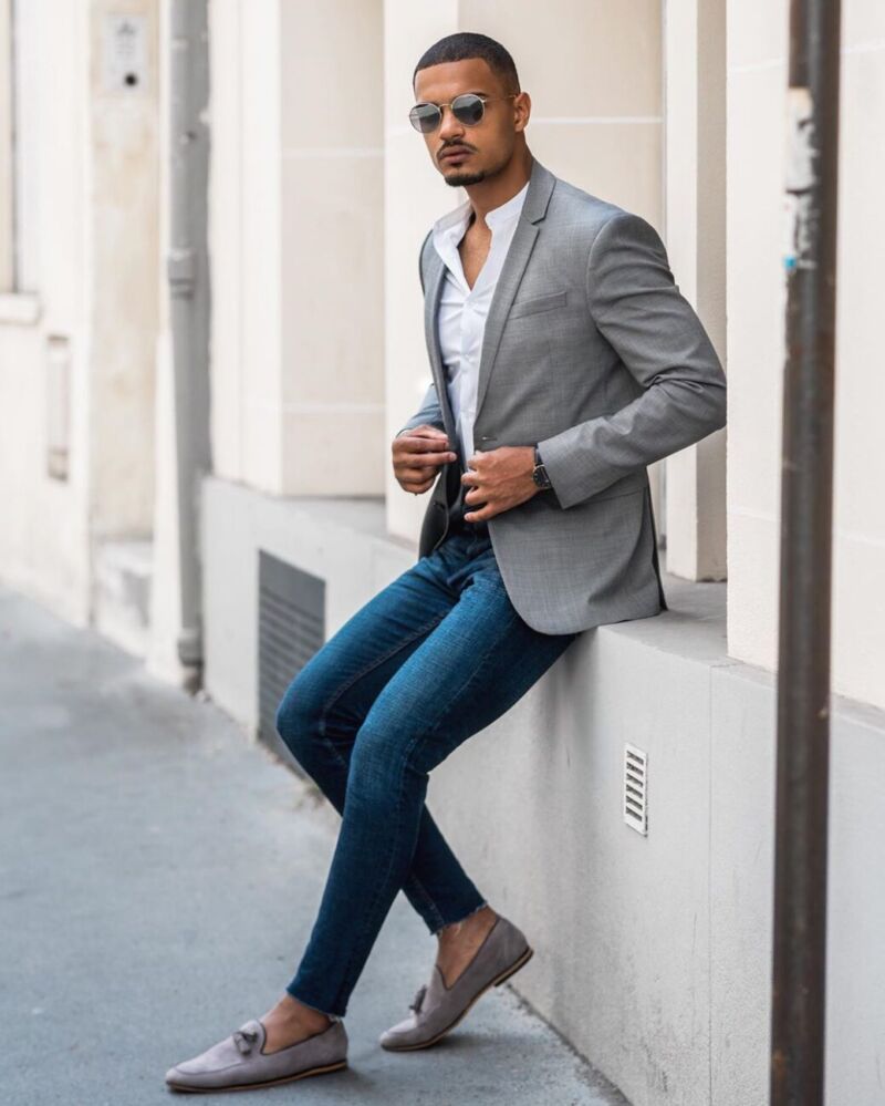 きれいめスタイルでは、細身パンツとスエード 革靴 メンズの組み合わせが定番です。全体の色数を抑えることで、高見え効果が高まります。