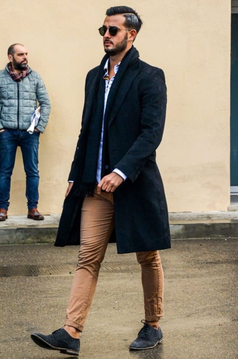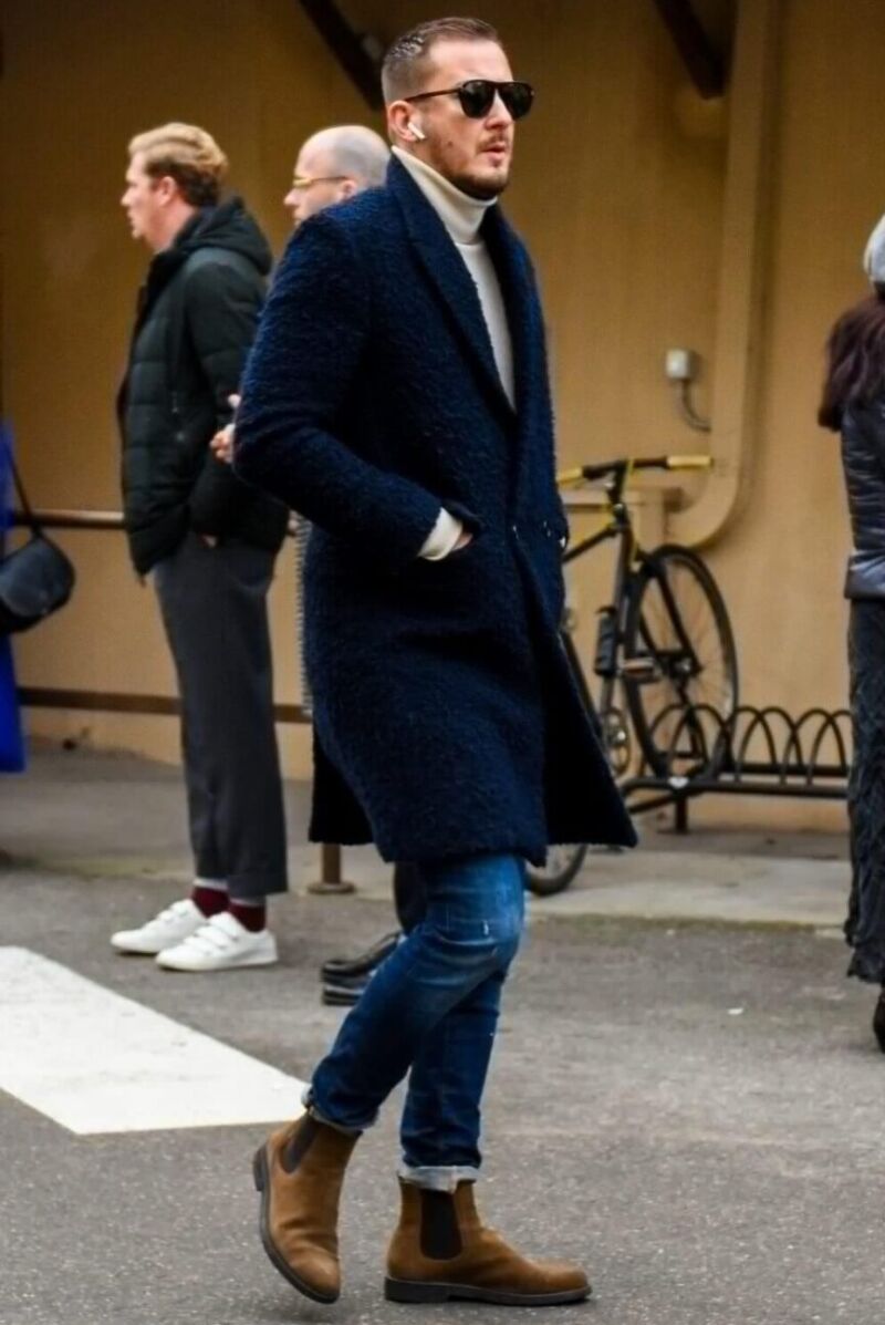 スエードシューズ 冬 チェスターコートとの相性