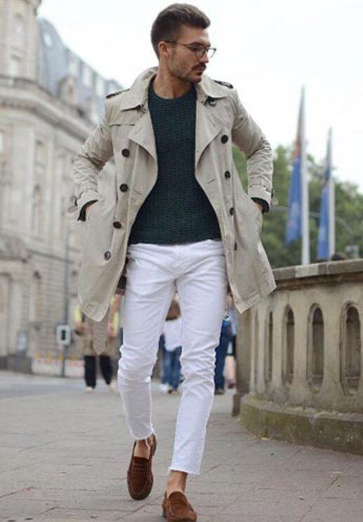 チェスターコートには、スエード 革靴 メンズやローファーが好相性です。きれいめで女性ウケしやすい組み合わせです。
