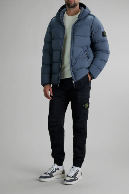 20代は“抜け感”と“遊び心”を取り入れたコーデが鍵。ユーティリティカーゴパンツとストーンアイランドのダウンジャケットを組み合わせれば、アクティブながらも洗練された印象に仕上がります。ダウンの立体的なフォルムとブランドのロゴバッジが、ストリートスタイルを格上げします。