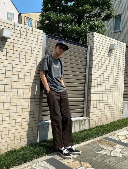 定番ワークパンツは太めのゆったりがストリートの若者に人気のシルエットです