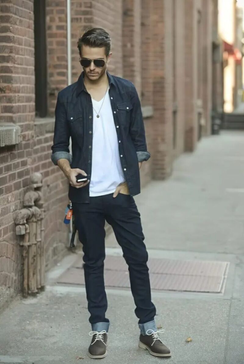 デニムシャツ スニーカー 合わせ方/デニムシャツ ブーツ コーデ メンズ