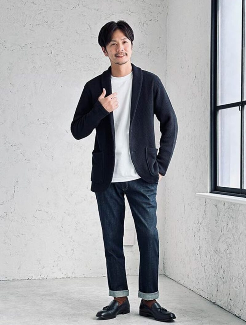 40代は主張よりも、整って見えることが強いです。革靴やローファーで締めれば、デニムでも品が出ます。折り返しは目立たせず、静かに差をつけるのが正解です。