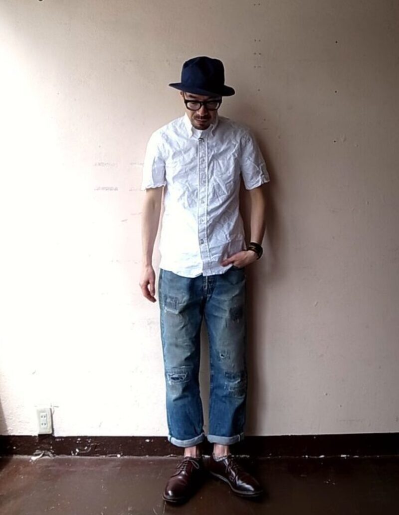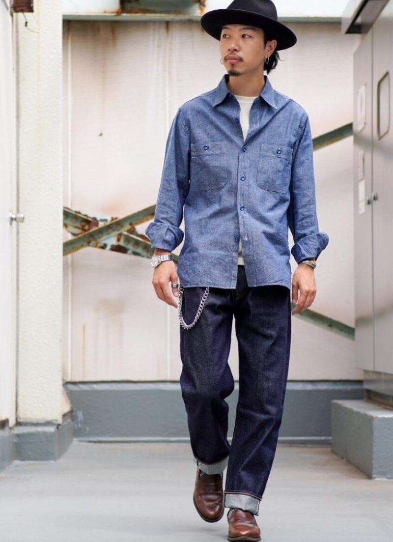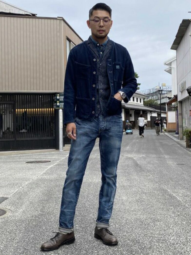 実例⑤|セルビッジ(赤耳)を“さりげなく見せる”通好みコーデ
