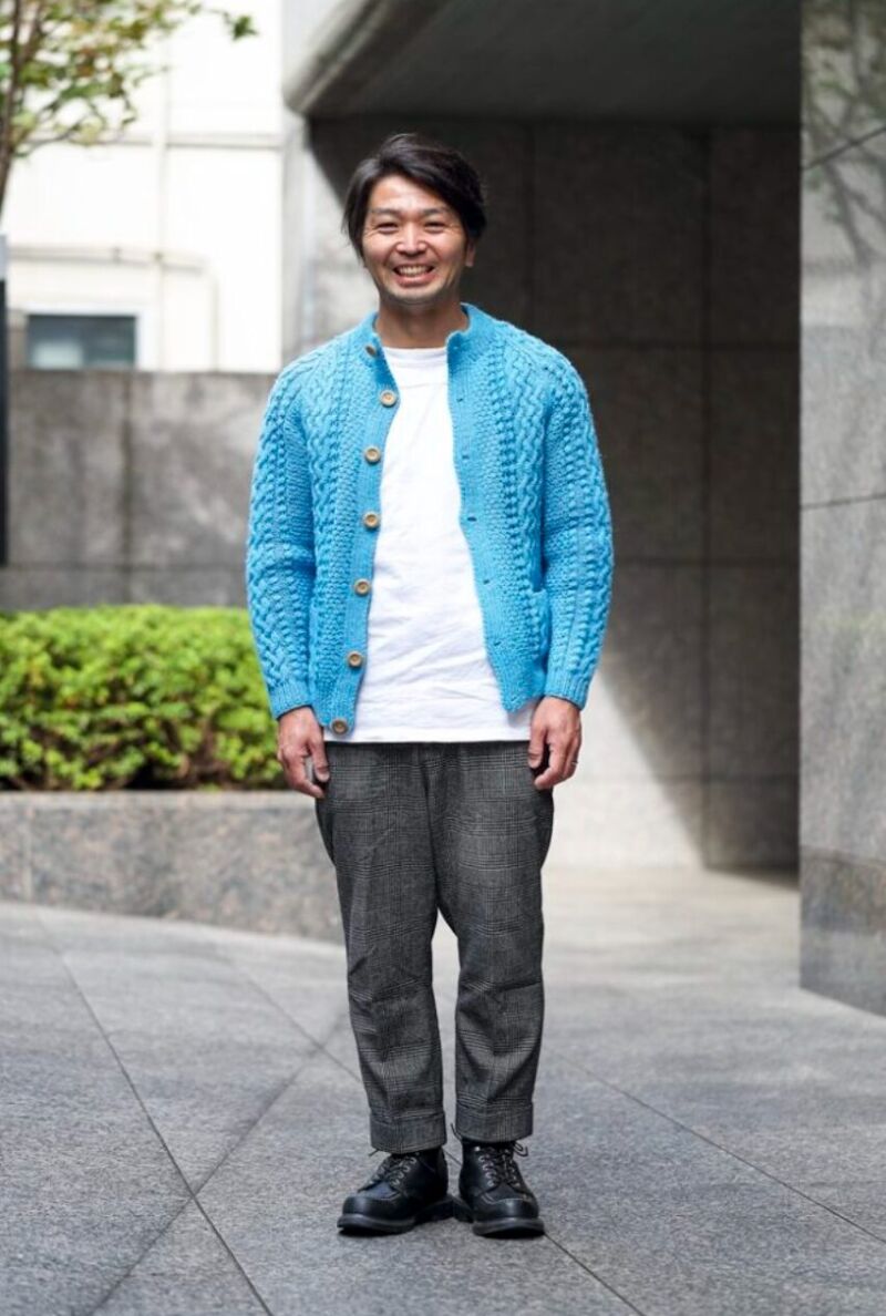 優しい雰囲気のカーディガンとレッドウイングを合わせることで、柔らかさと男らしさが絶妙に混ざります。女性からの好感度も高く、冬のデートスタイルにも最適です。
