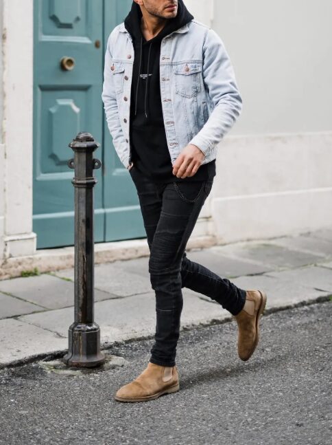 黒デニム ブーツ コーデ メンズで作る足元印象