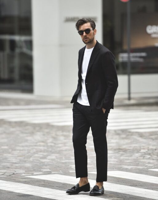 ジャケットの袖やパンツの裾を少しロールアップすることで、ラフすぎず自然体のかっこよさを演出できます。女性から見ても好印象のスタイリングです。