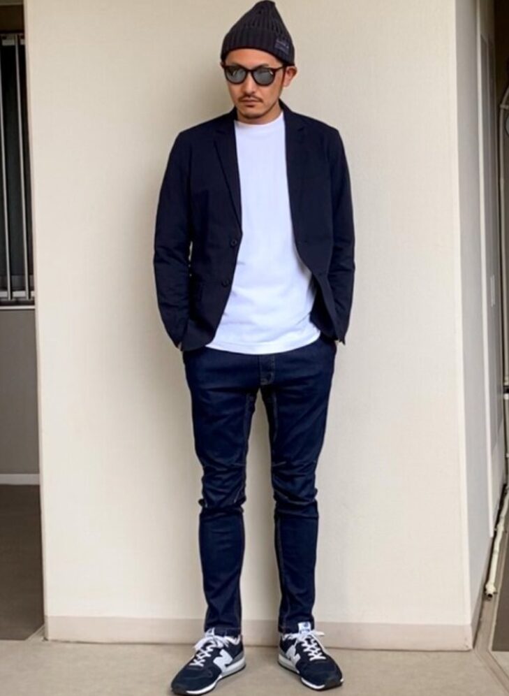 春のデートにはジャケットとニューバランスの組み合わせが最適です。インナーをシンプルにすることで、女性ウケしやすいきれいめスタイルが完成します。