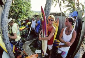 1980年代のサーフィンカルチャーは、多くの面で活気に満ちた時代となっていきます。サーフィンがスポーツから一種のライフスタイルやカルチャーへと変容し始めた時期でもあり、音楽やファッション、アートなどとも密接に結びついていました。サーフロックやパンクロックなどの音楽ジャンルがサーフィンカルチャーと結びつき、多くのサーファーがこれらの音楽を愛好し、ファッションではビビットなカラーやネオンカラーなど特有なスタイルもこの時代の特徴と言えます。