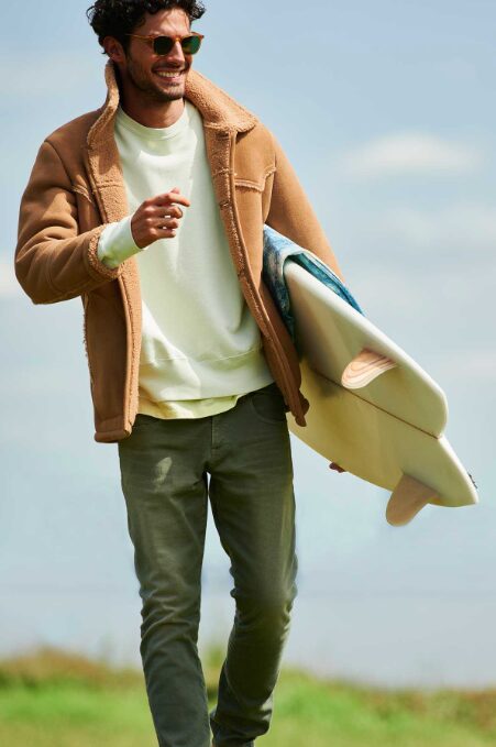 ラフなジャケットスタイルがオールドサーファースタイル。海への往路もおしゃれに決めたい。