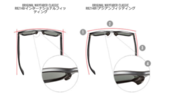 アジアンフィッティングモデルは、フレームに緩やかなカーブをもたせ、ノーズパッドを高めに設計したことで、アジア人の顔によりフィットし、快適にお使い頂けるモデルです。 品番の末尾に、“F”がつくモデルがRayBanではアジアンフィッティング規格となっています。