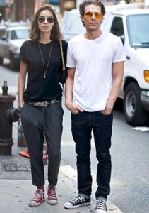 カップルでのオールスターコーデ!カジュアルなんだけど二人で色違いのスニーカーが仲の良さと愛の深さを感じさせますね!