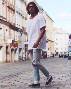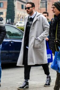 おしゃれなVANSの街角スナップを見ていただいて分かる通り、細いパンツにも太いパンツにも、デニムにもシャツにもジャケットにもライダースにもどんなコーデにも合せられる万能スニーカーなのです。